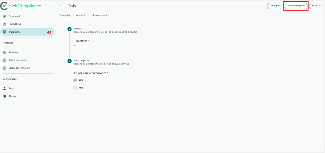 Antes, o fluxo só permitia uma única devolução. Agora, se for necessário, você pode continuar devolvendo o formulário para etapas anteriores quantas vezes for preciso — até chegar na etapa desejada.