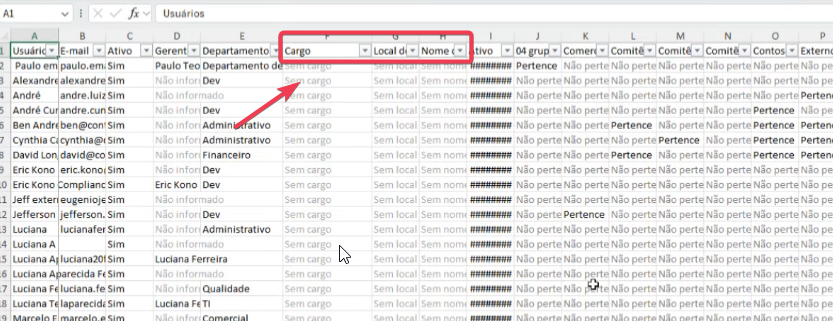 Esses campos vão constar nos relatórios gerados, no módulo de usuários na parte de "Usuários e grupos" e também no relatório analítico gerado dentro do módulo de processos.