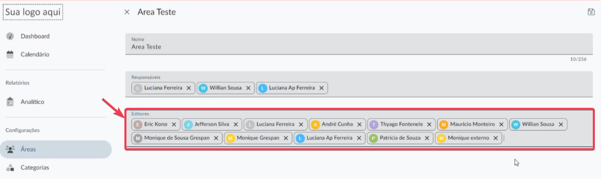 Agora é possível a inclusão do um novo perfil, "Editores", no cadastro das obrigações das áreas: