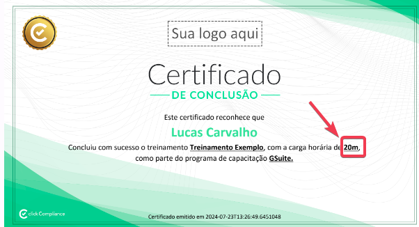 Agora é possível verificar a carga horaria de duração do treinamento no certificado de conclusão: