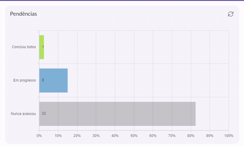Novo dashboard de treinamentos levando em conta o total de pessoas que concluíram, que estão em progresso e que nunca acessaram algum treinamento.