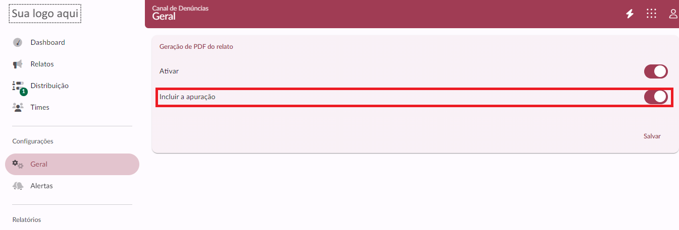 Agora é possível incluir a opção de imprimir as apurações ao gerar o PDF de um relato.
