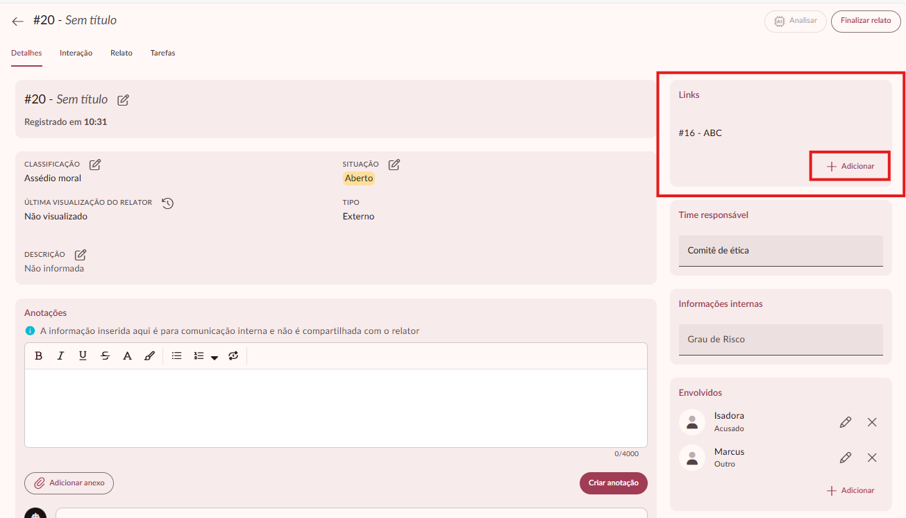 Em seguida busque o relato que você precisa associar, e depois selecione ele:É importante lembrar:
