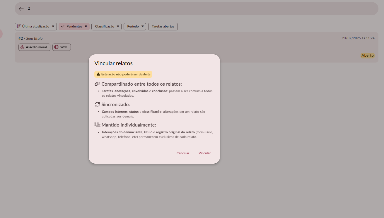 Agora é possível associar uma denúncia a outra.