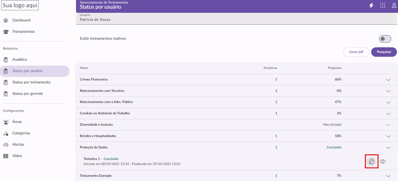 Agora o Gestor pode emitir os certificados dos treinamentos de cada colaborador.