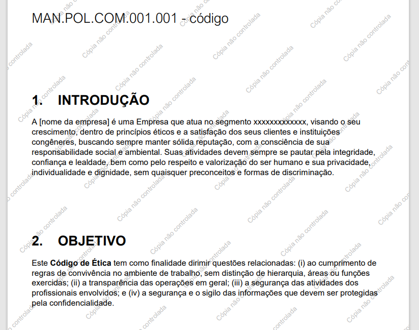 Agora todo documento texto que for impresso ou baixado do sistema levará uma marca d'água escrito "Cópia não controlada" para evitar que o usuário final faça uso indevido do documento.