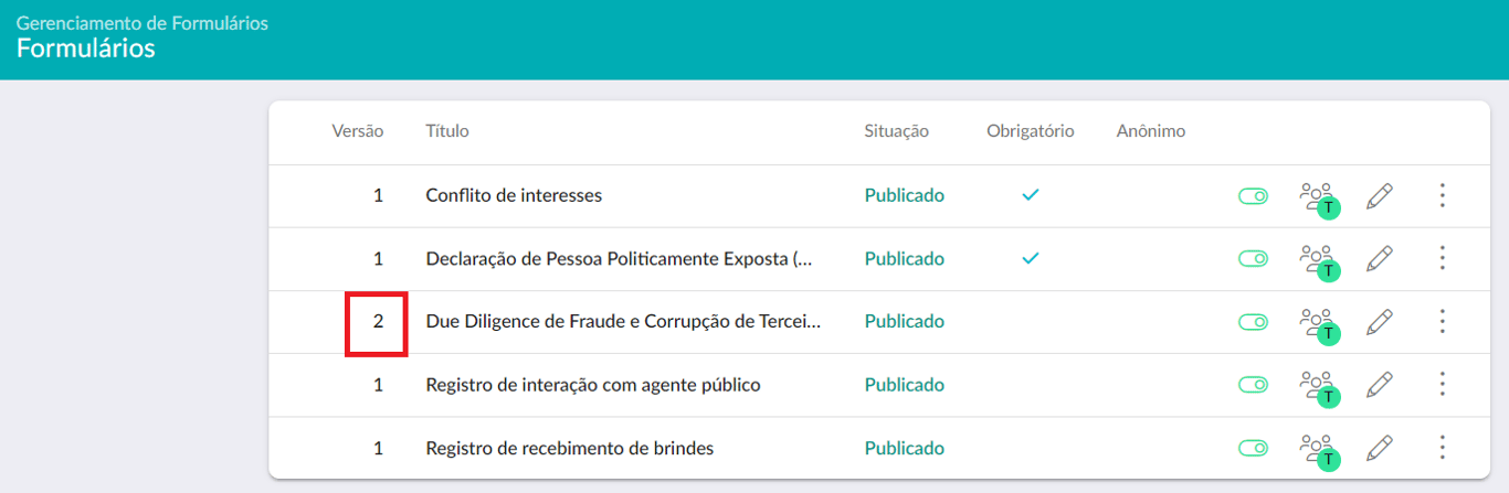 Agora é possível alterar um formulário já existente, criando assim uma nova versão.