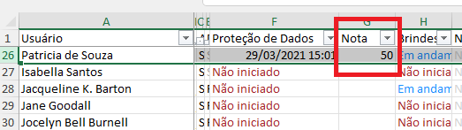 Agora, no relatório analítico, você tem mais uma coluna com as notas tiradas nos treinamentos.