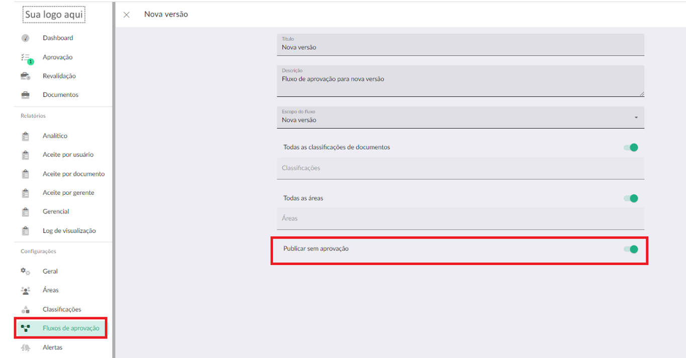 Agora você pode criar fluxos de aprovação sem aprovadores. Ou seja, o editor de documentos poderá publicar o documento diretamente.
