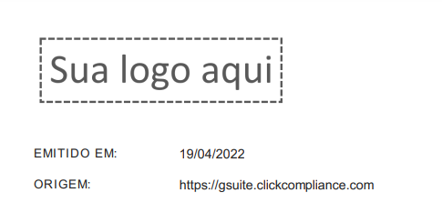Os relatórios em PDF agora exibem a logo e o endereço eletrônico que originou a emissão do relatório. Os relatórios afetados são: aceite por usuário (Documentos), aceite por documento (Documentos), status por usuário (Treinamentos), status por treinamento (Treinamentos), código de acompanhamento de relato (Canal de denúncias) e código de acompanhamento de solicitação (Canal de privacidade).