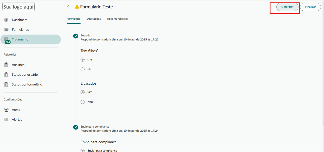 Para isso, é preciso entrar no formulário devolvido ou cancelado e selecionar o botão "gerar PDF"