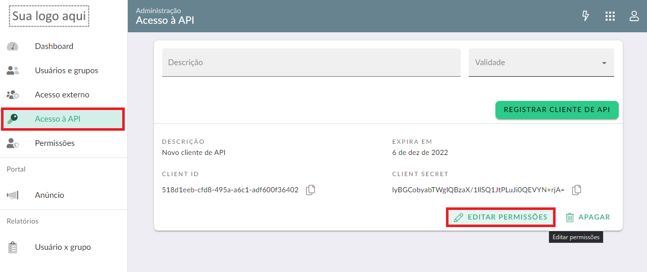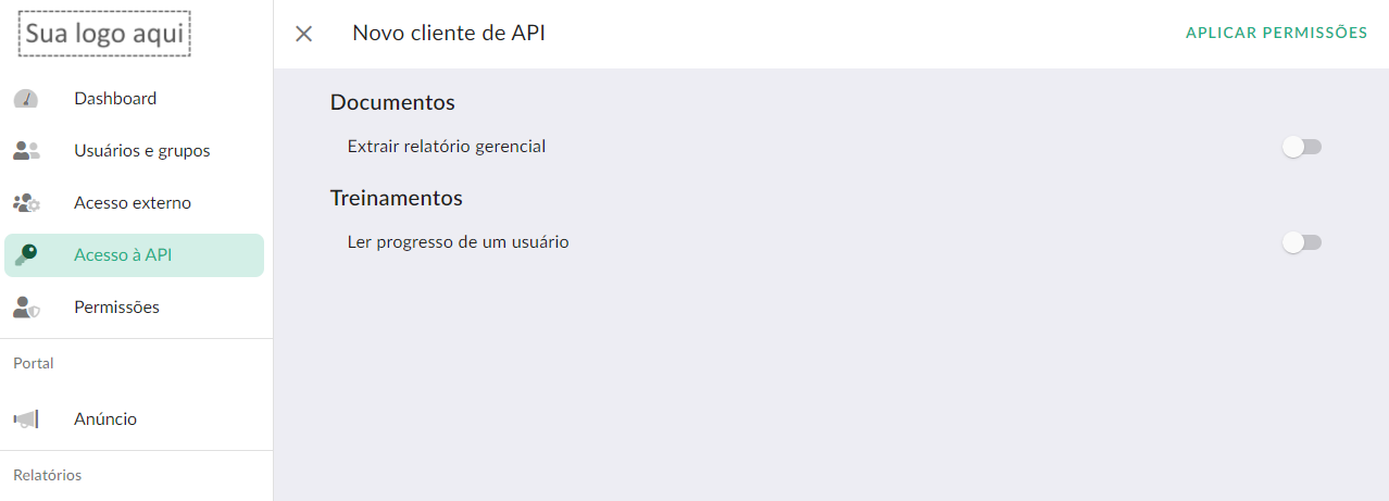 Criamos uma nova tela, acessada pela tela de registro de clientes de API. Nela você pode configurar as permissões aos endpoints disponíveis para integração de aplicações externas com nossa API.