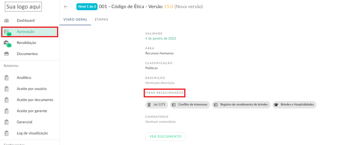 Os itens relacionados ao documento estavam sendo apresentados na tela de aprovação sem o título. Isso gerava dúvida, para alguns aprovadores, se os itens apesentados não se tratavam do próprio documento a ser aprovado.