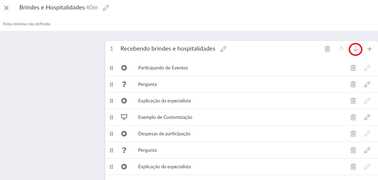 Havia um problema na reordenação das aulas do treinamento que impedia que o administrador as organizasse corretamente, mas foi corrigido.