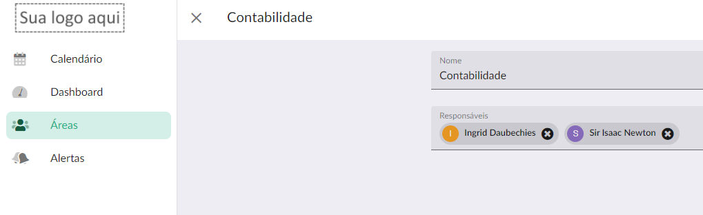 1) O administrador do módulo define as áreas responsáveis pelas obrigações