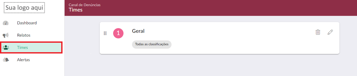 Esta funcionalidade está disponível para todos os clientes que possuem o módulo do canal de denúncias enterprise. Para estes clientes, esta funcionalidade já está habilitada e os usuários do perfil "Gerentes do canal de denúncia" agora fazem parte de um time, nomeado de "Geral", que criamos para compatibilidade com o modelo antigo, uma vez que no novo, somente usuários dos times poderão tratar as denúncias.