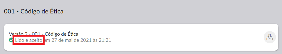 O texto informativo de aceite nos relatórios de aceite por usuário e por documento foi modificado para "Lido e aceito em" ao invés de somente "Aceito em". Esta alteração busca dar mais ênfase ao administrador de que o usuário leu antes de aceitar um documento.
