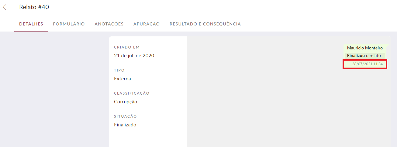 Apenas a hora da interação com o denunciante estava sendo exibida no histórico da conversa, mas agora está sendo exibido a data também.