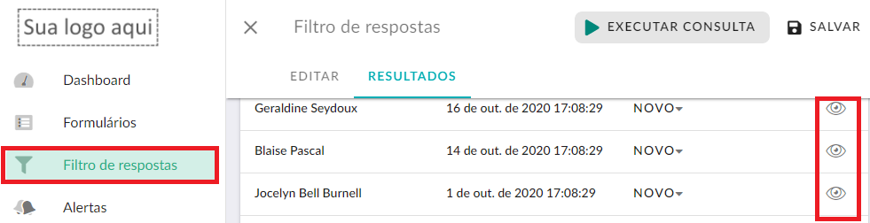 Criamos uma nova opção para visualização de todas as repostas de um determinado usuário a um formulário que pode ser utilizada através dos filtros de respostas. Esta opção está disponível no resultado da consulta do filtro: