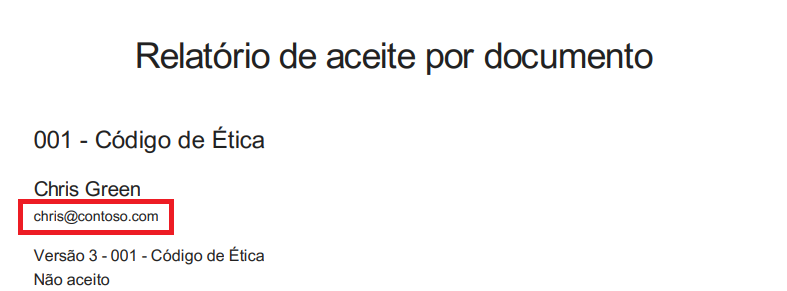 Em uma de nossas últimas atualizações, passamos a exibir o e-mail do usuário em diversas telas do sistema, mas faltou colocar na versão impressa do relatório de aceite por documentos: