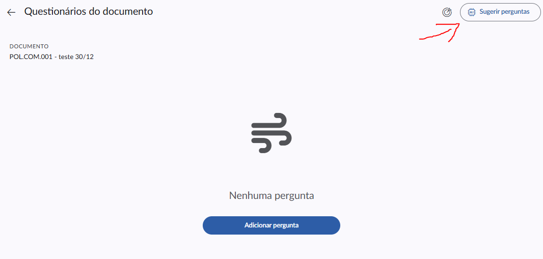 Basta selecionar ''Sugerir perguntas'' e apareceram opções de perguntas, elaboradas pela IA:
