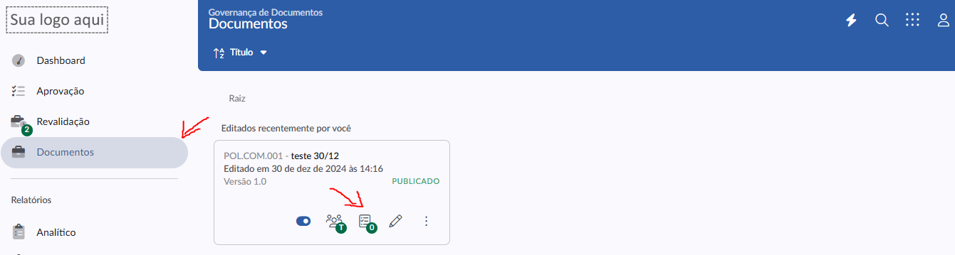 Na parte administrativa dos documentos, basta clicar no ícone do ''Caderno'':